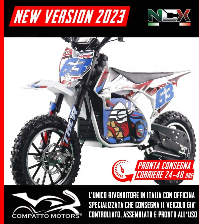 Acquista la nuova Mini Cross Elettrica NCX Thor EVO 1000W al miglior prezzo che solo Compatto Motors, rivenditore di Mini Cross NCX può garantirti.